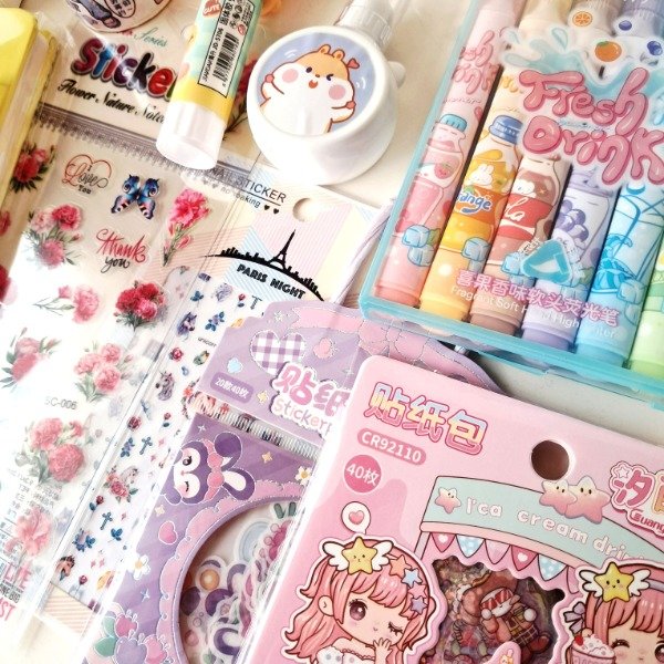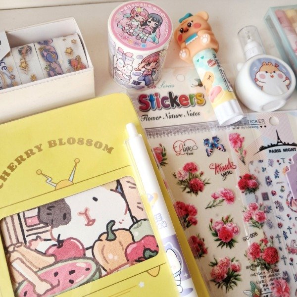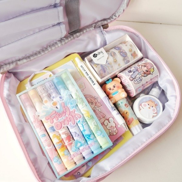 Set de journaling con un montón de productos kawaii y una valijita donde tener todo oprganizado.