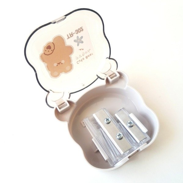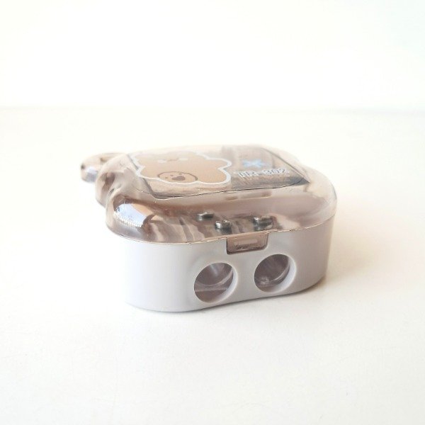 Sacapuntas con depósito y para dos tamaños de lápiz.