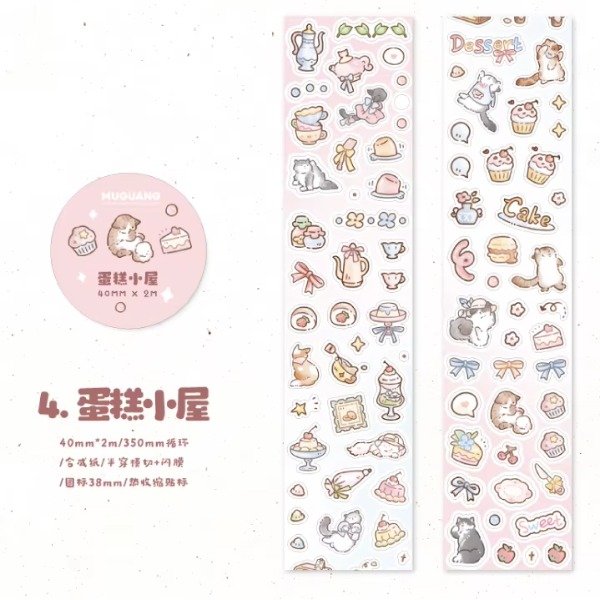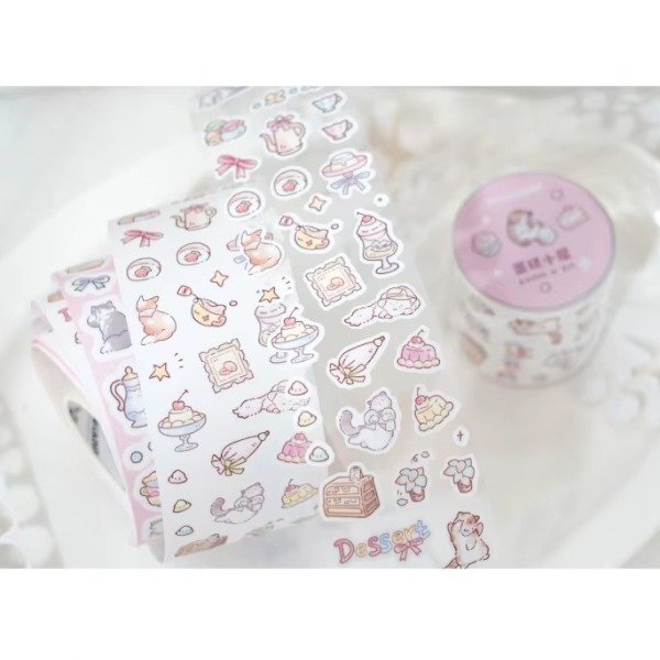 Cinta con stickers frosted troquelados.