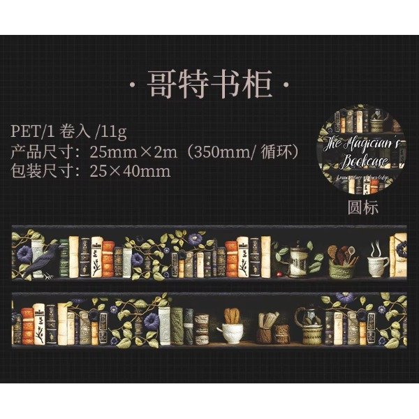 Cinta PET 25 mm - Gothic Bookshelf