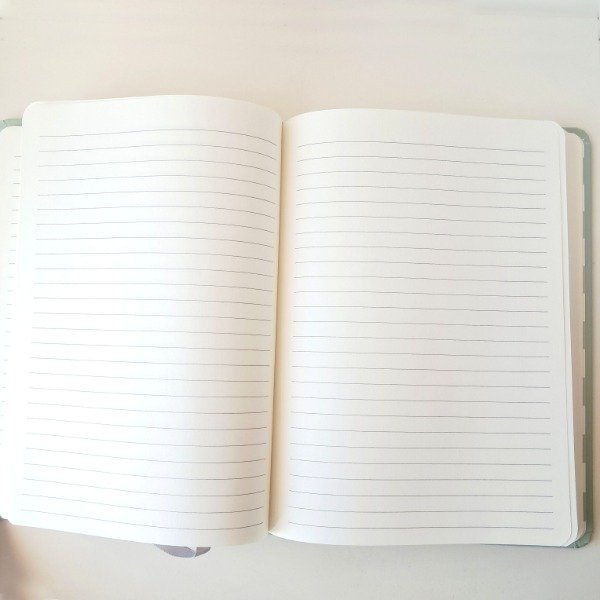 Cuaderno A5 tapa dura de hojas rayadas.