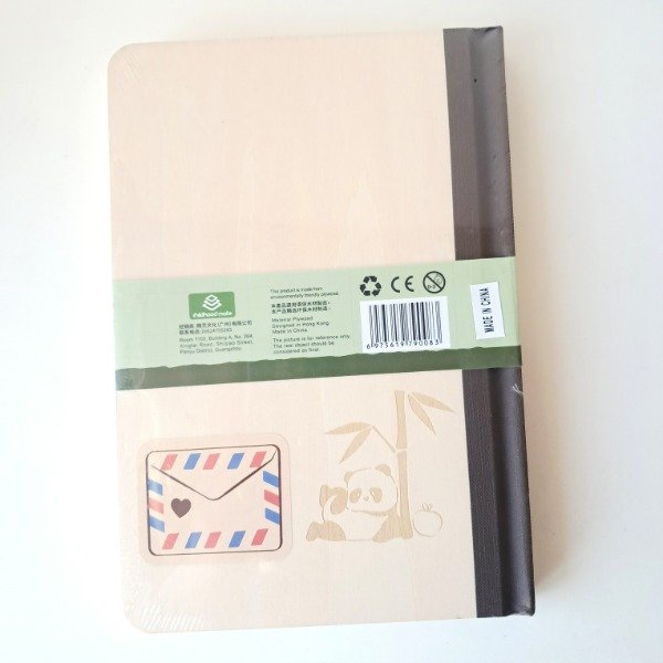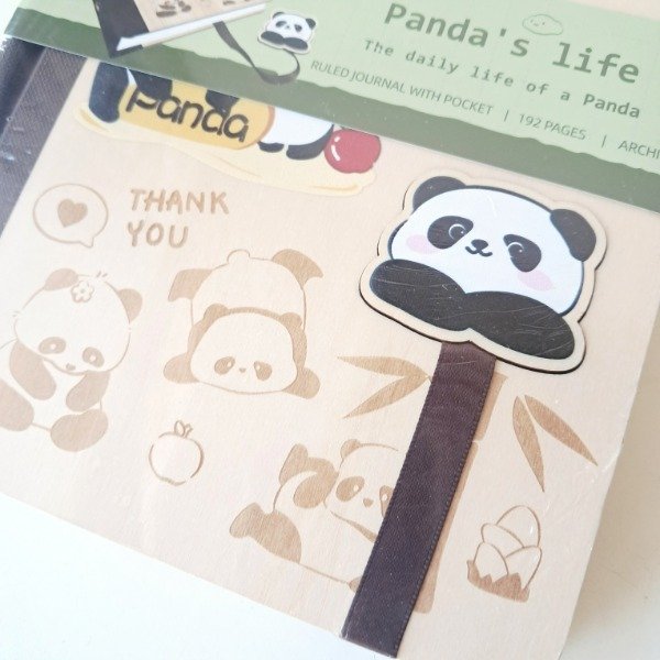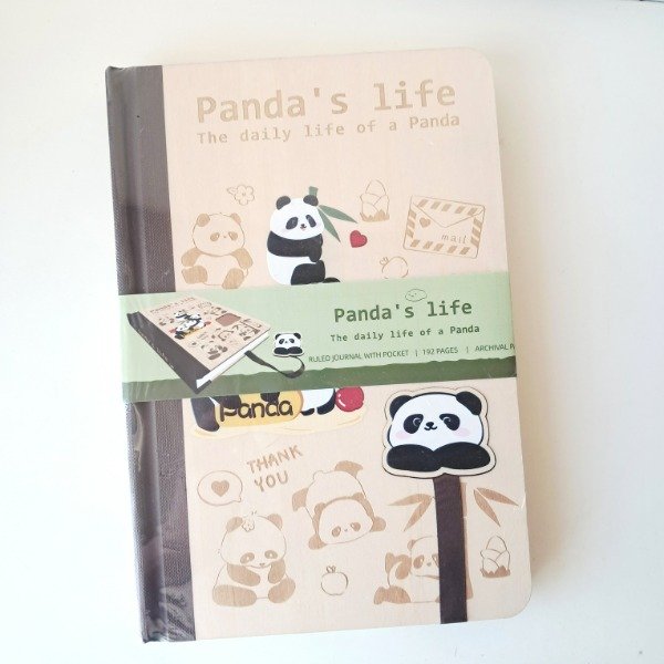 Cuaderno tapa dura de madera. Tiene una pieza calada en la tapa que se puede colocar para el cierre.
