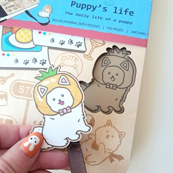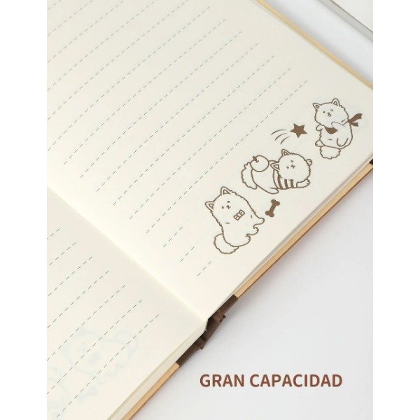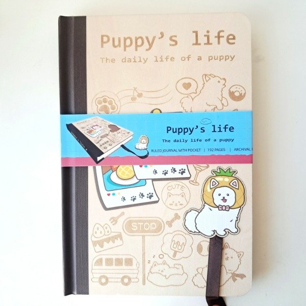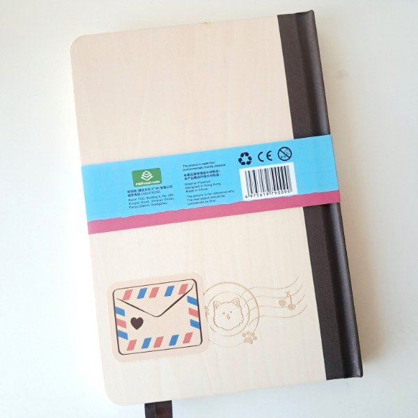 Cuaderno tapa dura de madera. Tiene una pieza calada en la tapa que se puede colocar para el cierre.