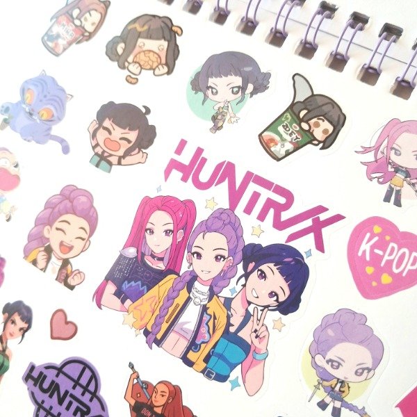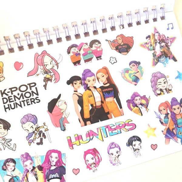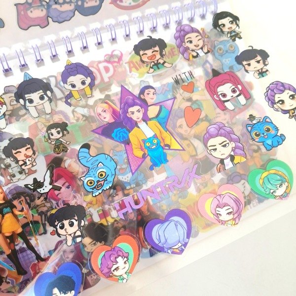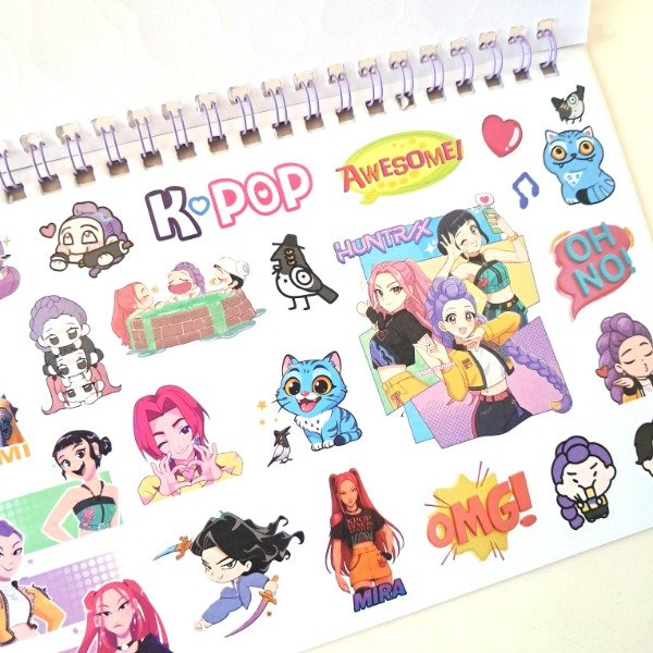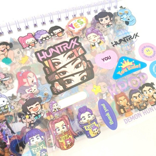 Libreta de stickers anillada con 5 hojas de stickers troqueladas en papel autoadhesivo y 5 hojas en sticker transparente PET.