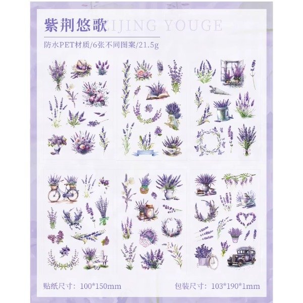 Set de 6 planchas de stickers PET - Bauhinia Song