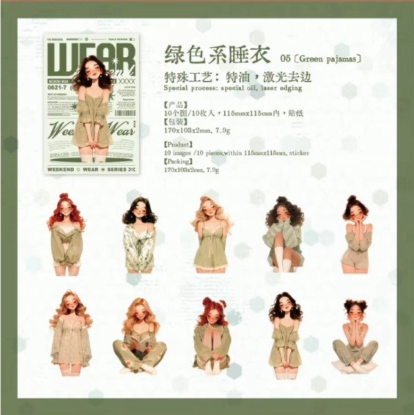 Set de 10 stickers - Green Pijamas