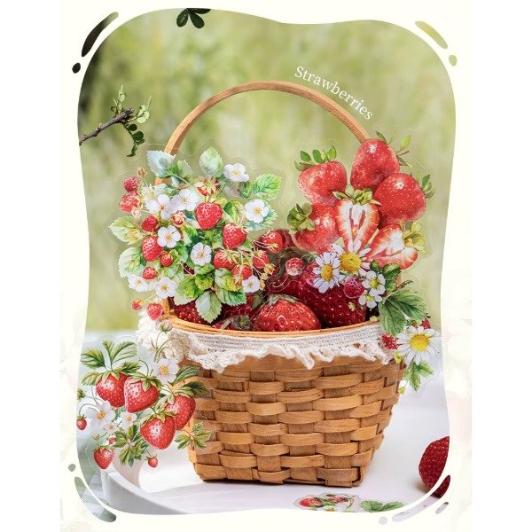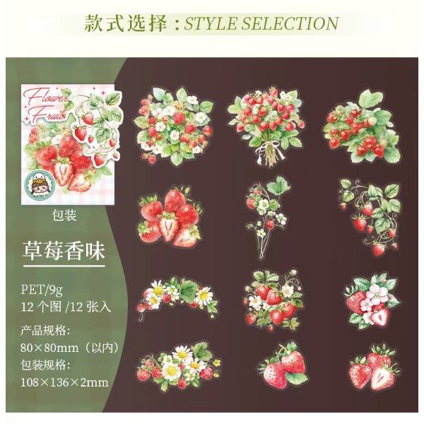 Set de 12 stickers transparentes - Flower Fruit: Frutillas