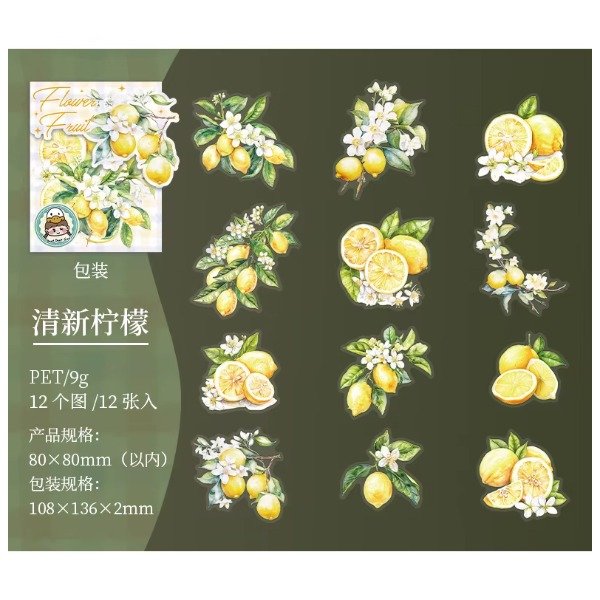 Set de 12 stickers transparentes - Flower Fruit: Limones