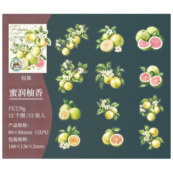 Set de 12 stickers transparentes - Flower Fruit: Pomelos