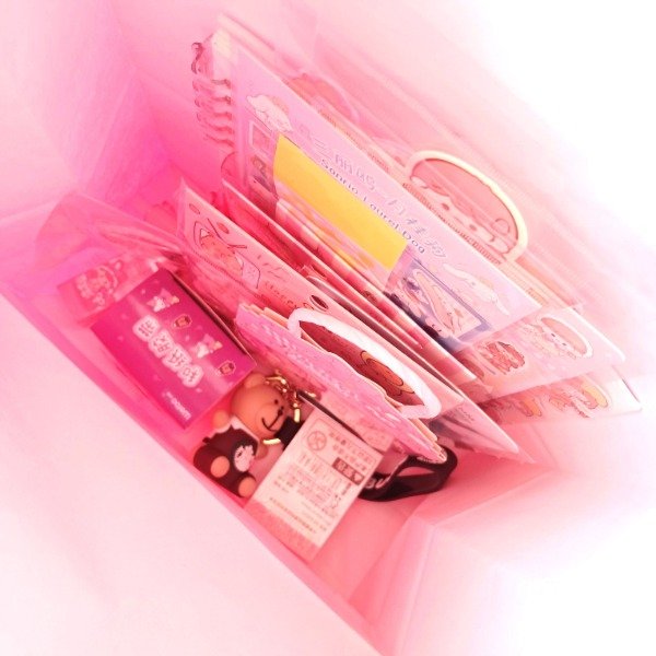 Incluye 17 productos entre ellos planchas de stickers de diferentes tipos, cuaderno, llavero, set de cintas, lapicera, memo pad, etc.
