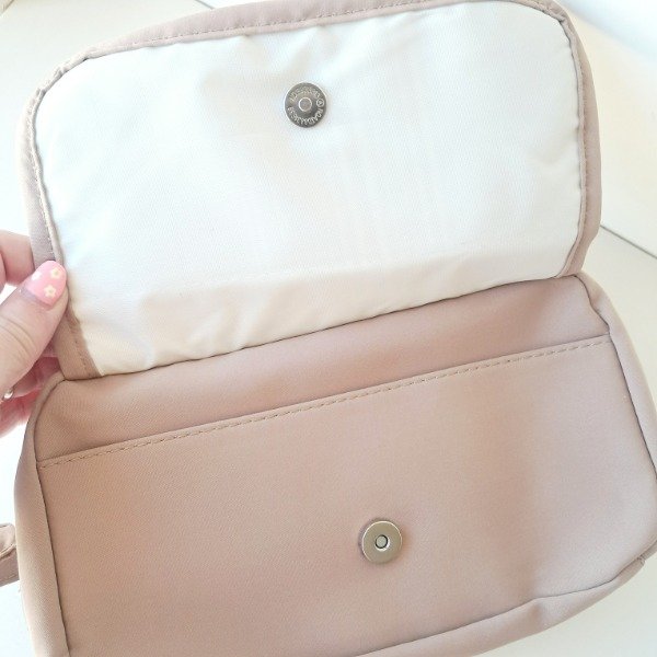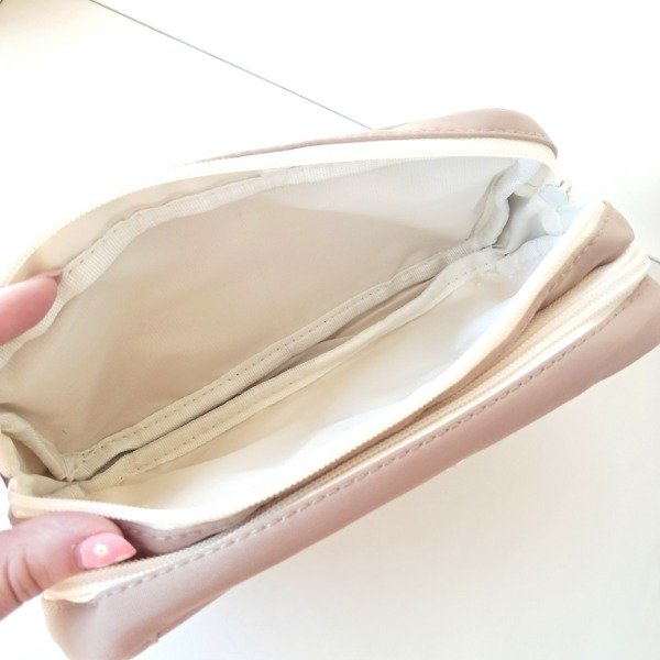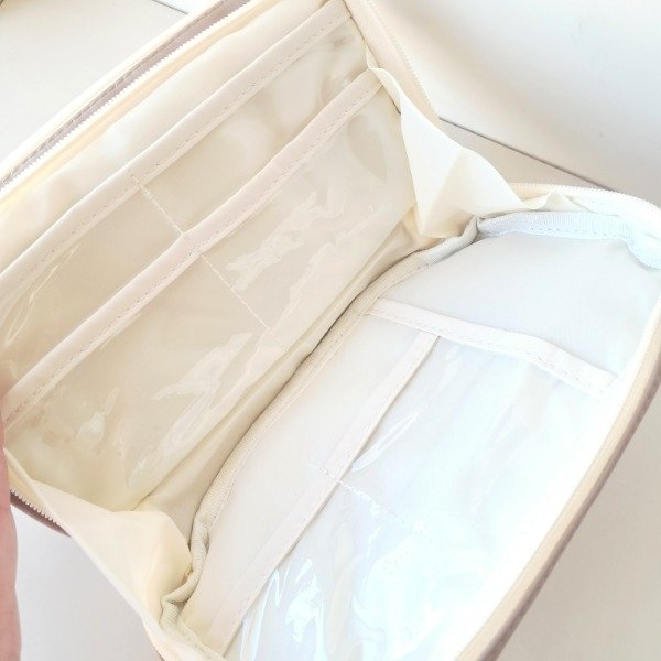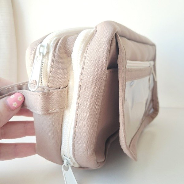 Cartuchera de tela resistente. Tiene dos compartimentos con cierre con bolsillos y dos bolsillos brontales uno con cierre y el otro con botón.