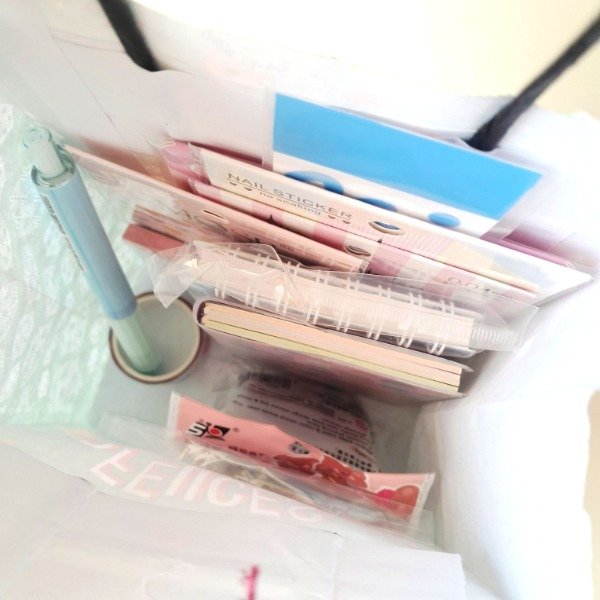 Incluye 12 productos entre ellos planchas de stickers de diferentes tipos, anotadores, lapicera, cintas, etc.