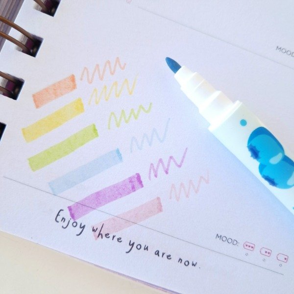 Set de 6 resaltadores con doble punta. De un lado tienen punta fina tipo marcador y del otro punta biselada para usar de resaltador.