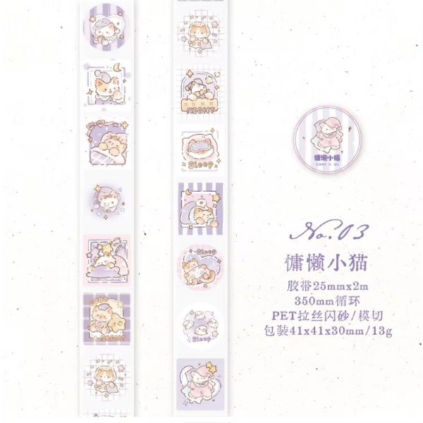 Cinta de stickers Frosted - Lazy Cat