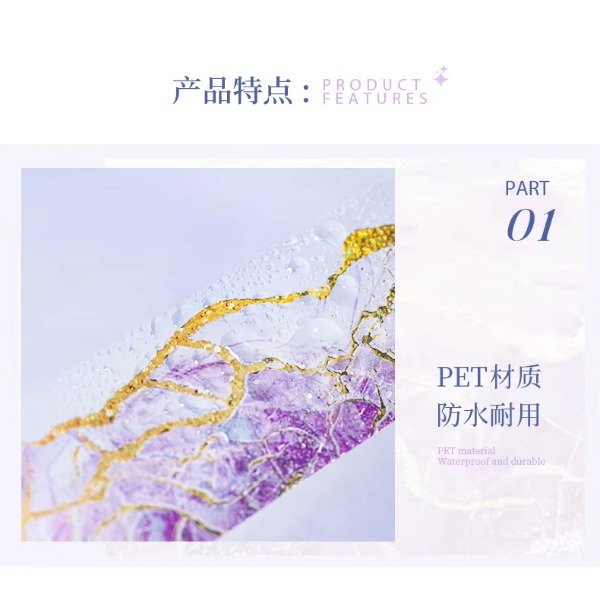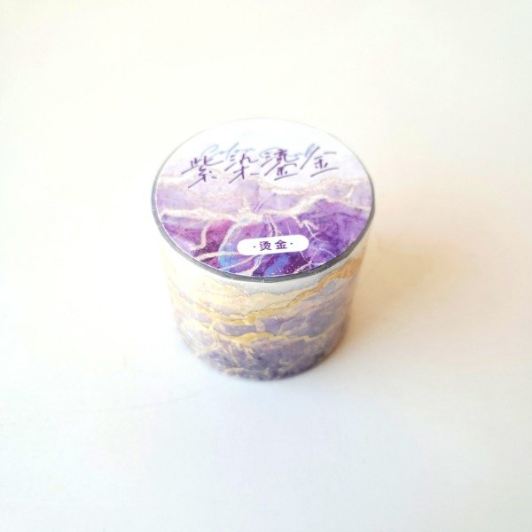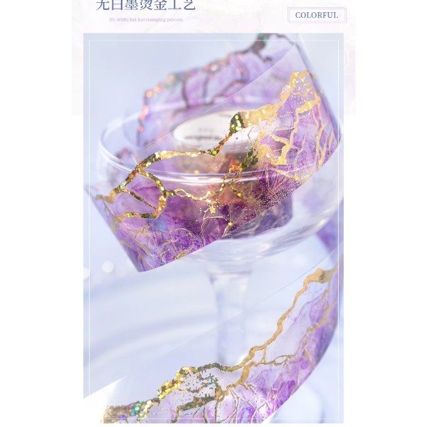 Cinta PET transparente con efecto foil dorado.