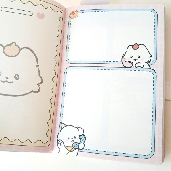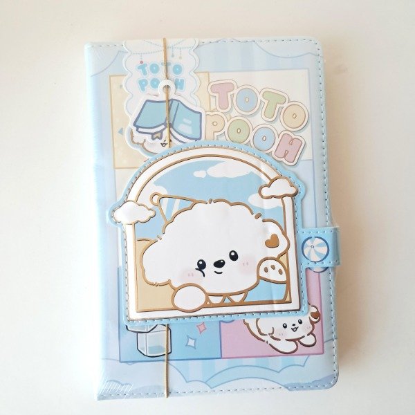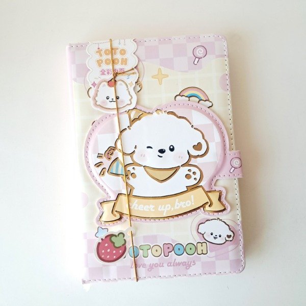 Cuaderno con tapa de cuerina y cierre magnético.