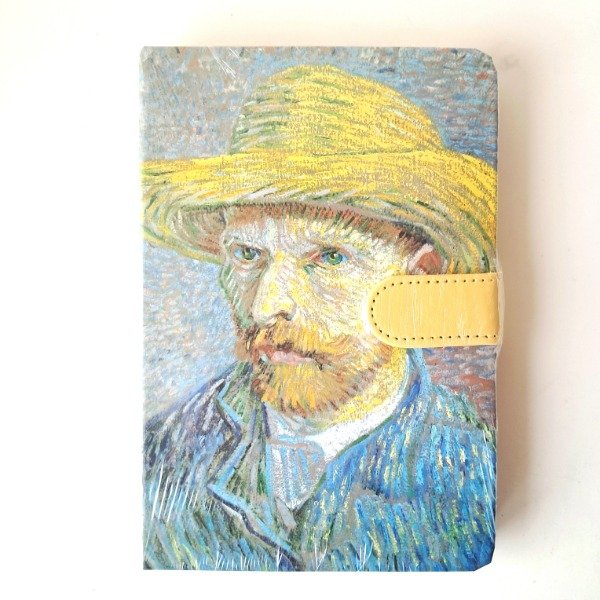 Cuaderno tapa dura de hojas rayadas con cierre magnético.