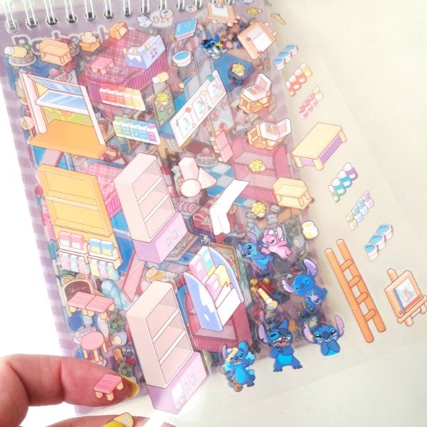 Libreta de stickers PET transparentes que viene con ocho bases de papel para aplicar los stickers y decorar los espacios como vos quieras.
