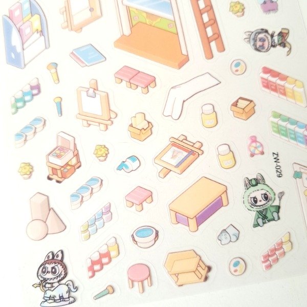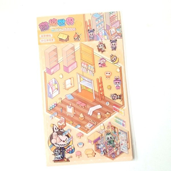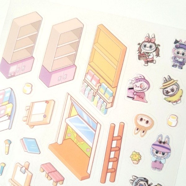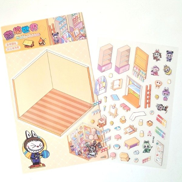 Plancha de stickers - Escena 3d: Labubu Art Store