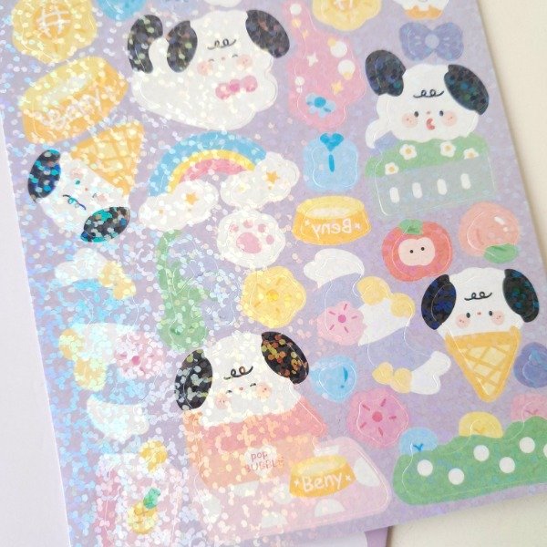 Plancha de stickers Holográfico - Spring Dog