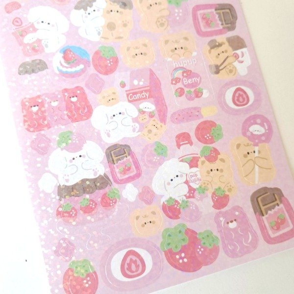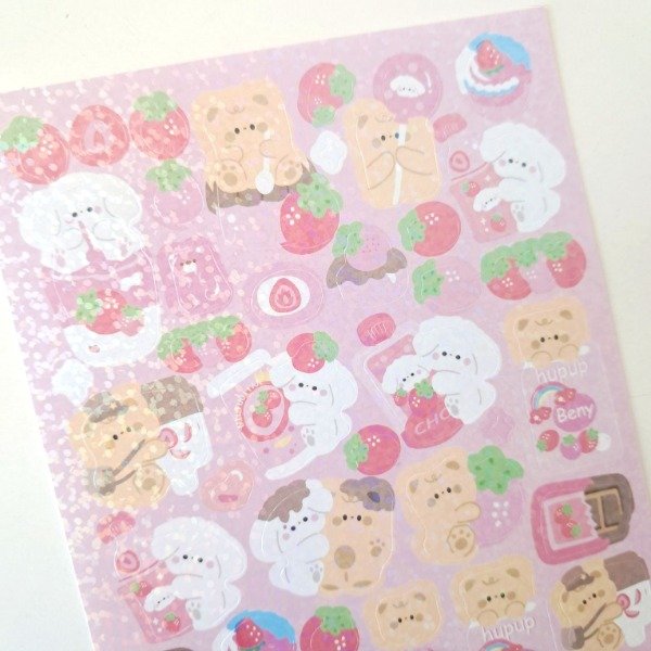 Plancha de stickers Holográfico - Strawberry Dog