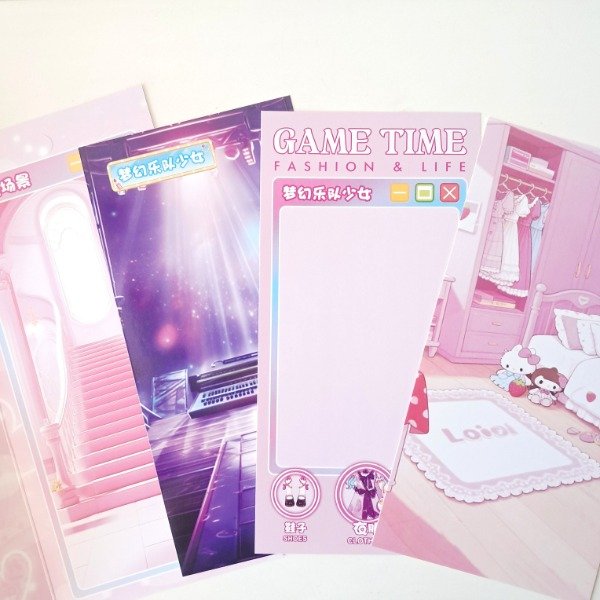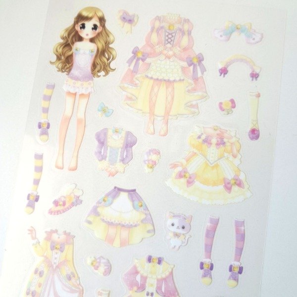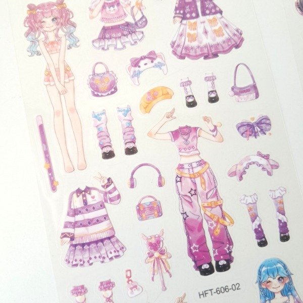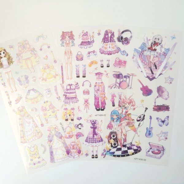 Incluye 3 planchas de cartulina con escenarios y 3 planchas de stickers con ropita y personajes para vestir.