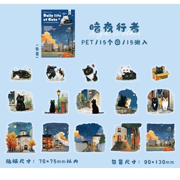 Set de 15 stickers - Daily Life of Cats: Night Walker